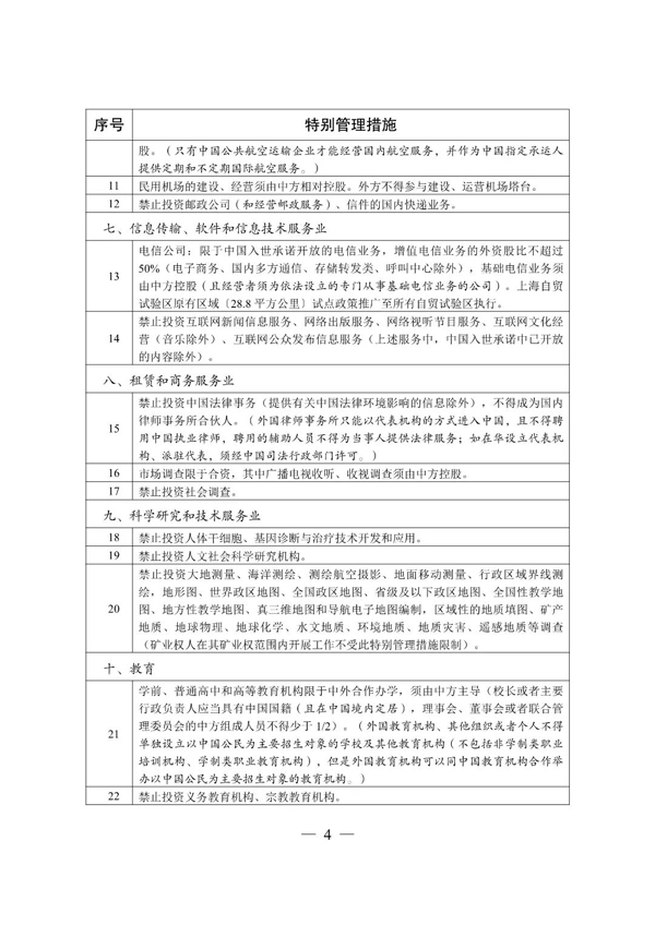 下方为《外商投资准入特别管理措施 (负面清单)(2020 年版) 》、《自由贸易试验区外商投资准入特别管理措施(负面清单)(2020年版)》详细内容