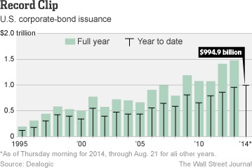 美国企业债券标售之猛令华尔街分析师措手不及。市场人士普遍预期,随着经济增长和美联储准备结束QE,2013年底美国国债收益率将从3%走高,这将打压债券价格,遏制企业发行新债的需求。但没想到,利率下降了,美国10年期国债收益率最近跌到2.3%的14个月低点。分析师表示,这反映了美国国内增长前景不均衡,乌克兰、以色列和伊拉克地缘政治危机,以及市场对欧洲面临新一轮经济萎缩的担忧。
